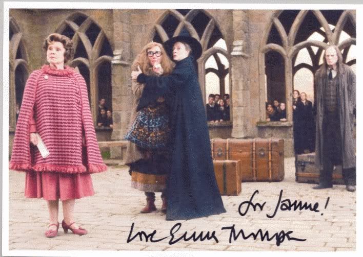 some great replies there, congrats 🙂 I also have the same photo as your 3rd one signed but by maggie smith, havent got round to sending it to Emma and the others yet.
