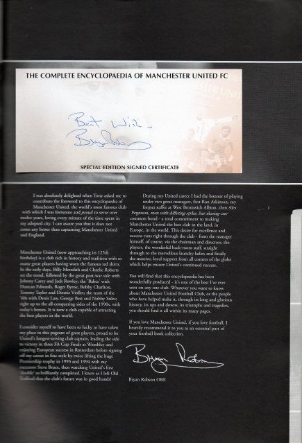 I got this Complete Encyclopaedia of Manchester United Football Club book with a Special Edition Certificate signed by Bryan Robson affiexed to first page for 99p