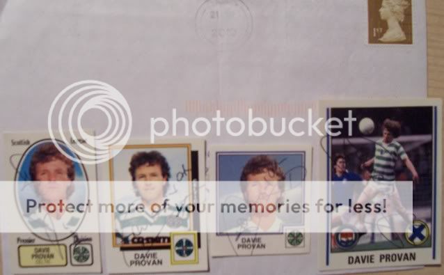 Received my cards back signed from ex Kilmarnock and Celtic player Davie Provan today,and many thanks to Brian for helping me out with the address details as I'd been trying to track him down for some time.