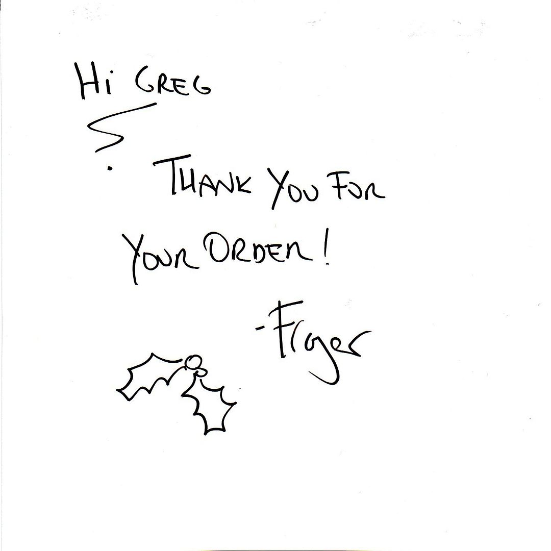I couldn't resist a book he is selling on his Facebook page for £4.95 inc P&P.  He has initialed and doodled the title page of the book and also signed two different promo cards (one of the back):