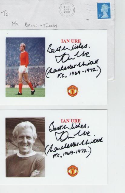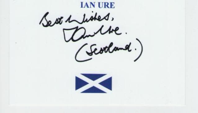 I sent three cards to Ian Ure at a private address on Monday , I got all three cards back signed today .