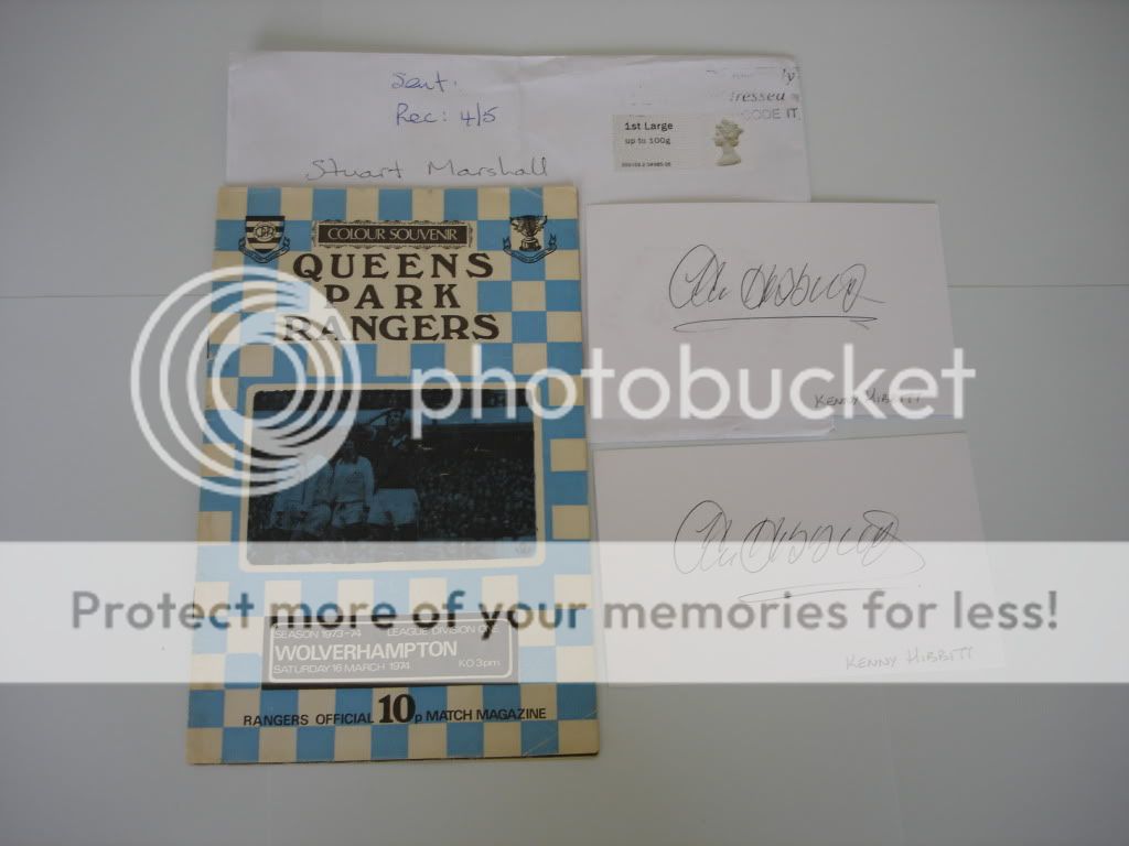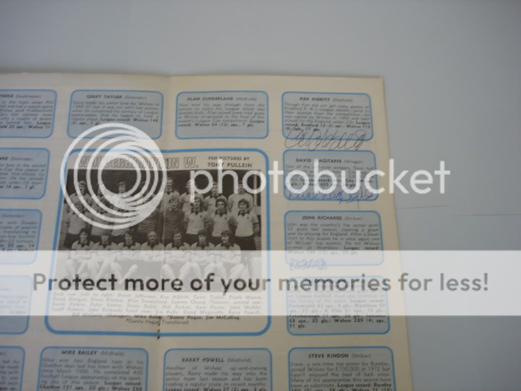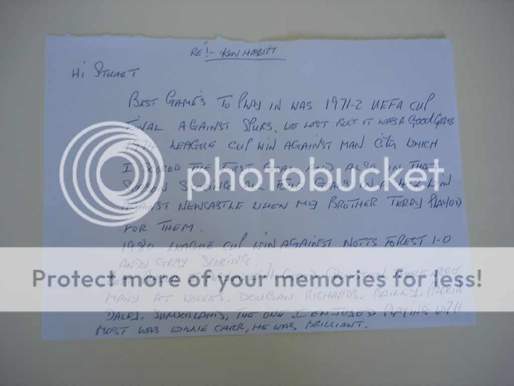 Sent programme, index cards, club crest cards and photos to Kenny Hibbit via Wolves FC on 19/1 and received all back signed today, 4/5. He also added a nice message on seperate paper as well.