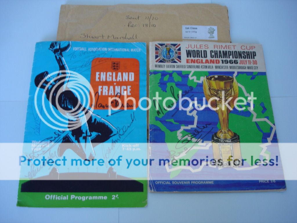 Sent two programmes and 66 photo to Martin Peters on 11/10 and received all back signed today, 18/10.