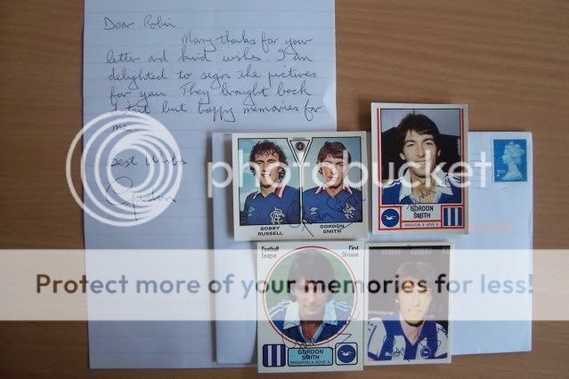 Two replies back today.I wrote to Bill Green via Leicester City where he is a scout,and my second reply from Gordon Smith via Rangers where he is now Director of Football.