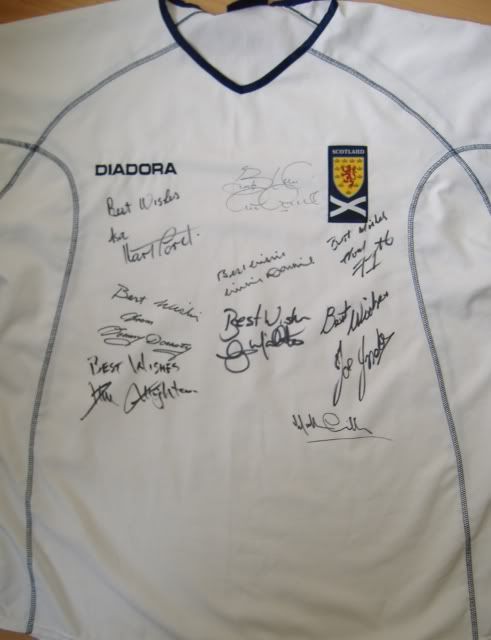 I sent my Scotland shirt my book and two cards to Willie Miller on Monday , I got everything back signed today .
