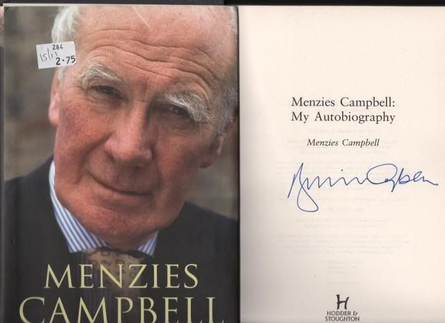 I found one today a nice signed Menzies Campbell autobiography for £2.75 a bit expensive for some of you lads but an average price for charity shop books up here .