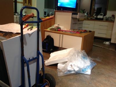 I had my son in law here 'till gone eleven last night putting in a new dishwasher and I've got the contents of my under sink cupboards on the side and in a crate on the floor waiting for a new sink to go in!