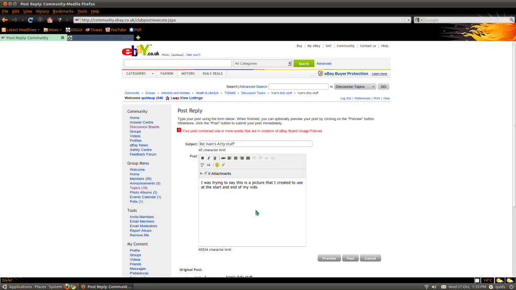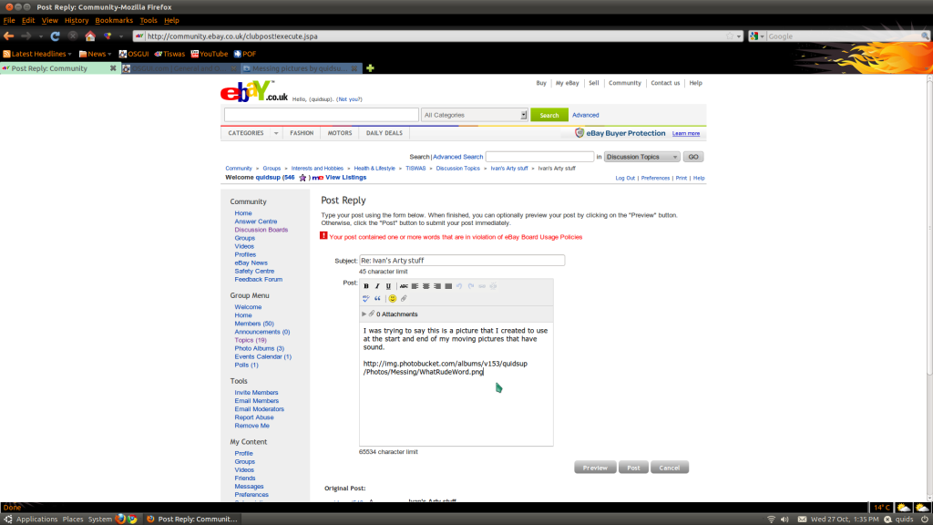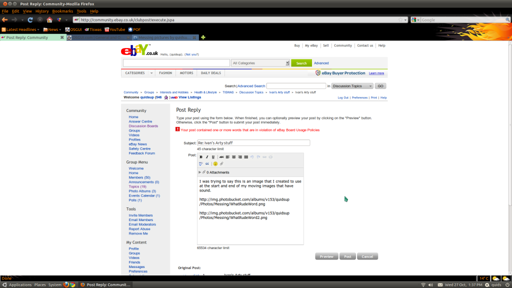 Ivan, exactly what are you trying to post and where, I see nothing wrong with the pic you gave the link for.