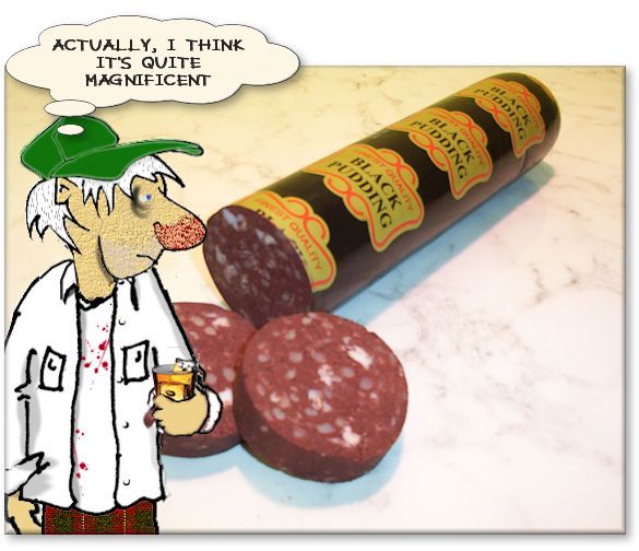I'd just like ta point out that me black pudding has proved to be very popular locally Brucer . . .