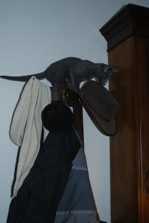 He is gorgeous too. Russian Blue, I bet - here' one, a  collegue's got 2.