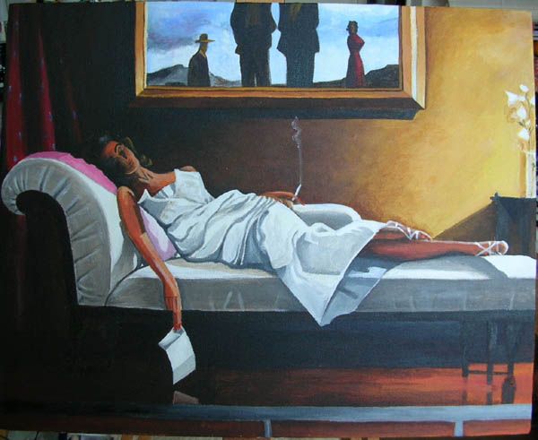 *Bunny, that's a Vettriano, commissioned by a collegue, in arcrylics though.